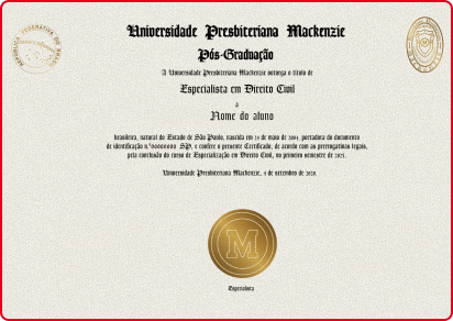 Seu certificado de Pós-Graduação emitido pelo Mackenzie